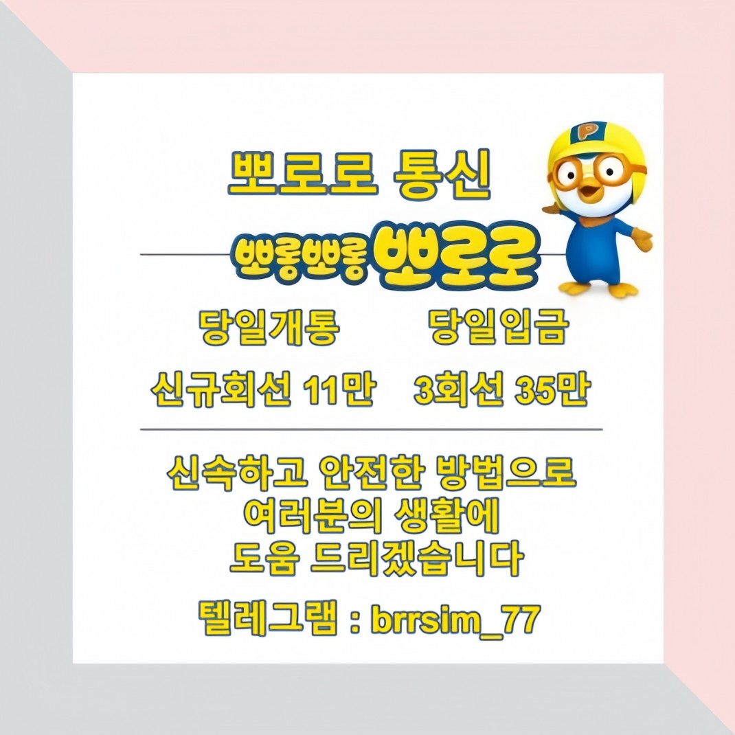 뽀로로 통신 선불유심 내구제는 단순히 휴대폰 유심을 판매하는 것을 넘어, 통신비 절감과 소액 수익 창출을 동시에 실현할 수 있는 신개념 프로그램으로 각광받고 있습니다. 최근에는 정산 시스템이 투명해져 유심내구제 정산 후기에서도 빠르고 안정적인 입금이 이루어진다는 평가가 이어지고 있습니다. 급전이 필요하거나 생계비가 부족한 분들이라면, 선불유심 팝니다 형태의 내구제를 합법적인 업체를 통해 진행해보는 것도 하나의 방법이 될 수 있습니다. 단, 모든 거래 전 반드시 업체의 신뢰도와 정산 시스템을 꼼꼼히 확인하는 것이 중요합니다.